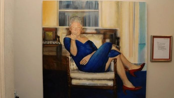 Na portretu je bivši američki predsjednik prikazan u provokativnoj pozi, s crvenim visokim potpeticama, što je odmah privuklo pažnju svjetskih medija.
